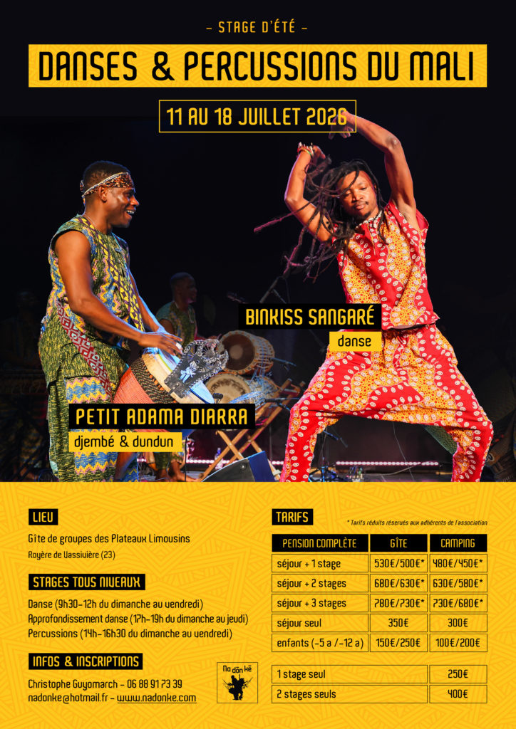L’objectif : vous permettre de découvrir les richesses culturelles et artistiques d’Afrique de l’Ouest en vous proposant des cours et des stages de percussions et danses africaines de traditions « mandingues » tout au long de l’année mais aussi en partageant des moments festifs sur des évènements et des manifestations que nous produisons ou co-produisons (spectacles, concerts, animations …).